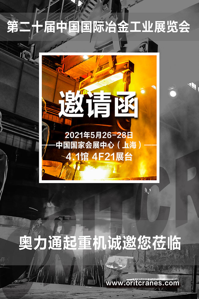 奧力通誠邀您第二十屆中國國際冶金工業(yè)展覽會(huì),上海起重機(jī),冶金起重機(jī),歐式冶金卷揚(yáng),鋼包起重機(jī),龍門吊,歐式雙梁橋式起重機(jī),起重設(shè)備,單梁式起重機(jī)廠家,天車起重機(jī),起重機(jī)廠家,起重機(jī)公司,起重設(shè)備生產(chǎn)廠家,防爆單梁起重機(jī)廠家,雙梁橋式起重機(jī)。