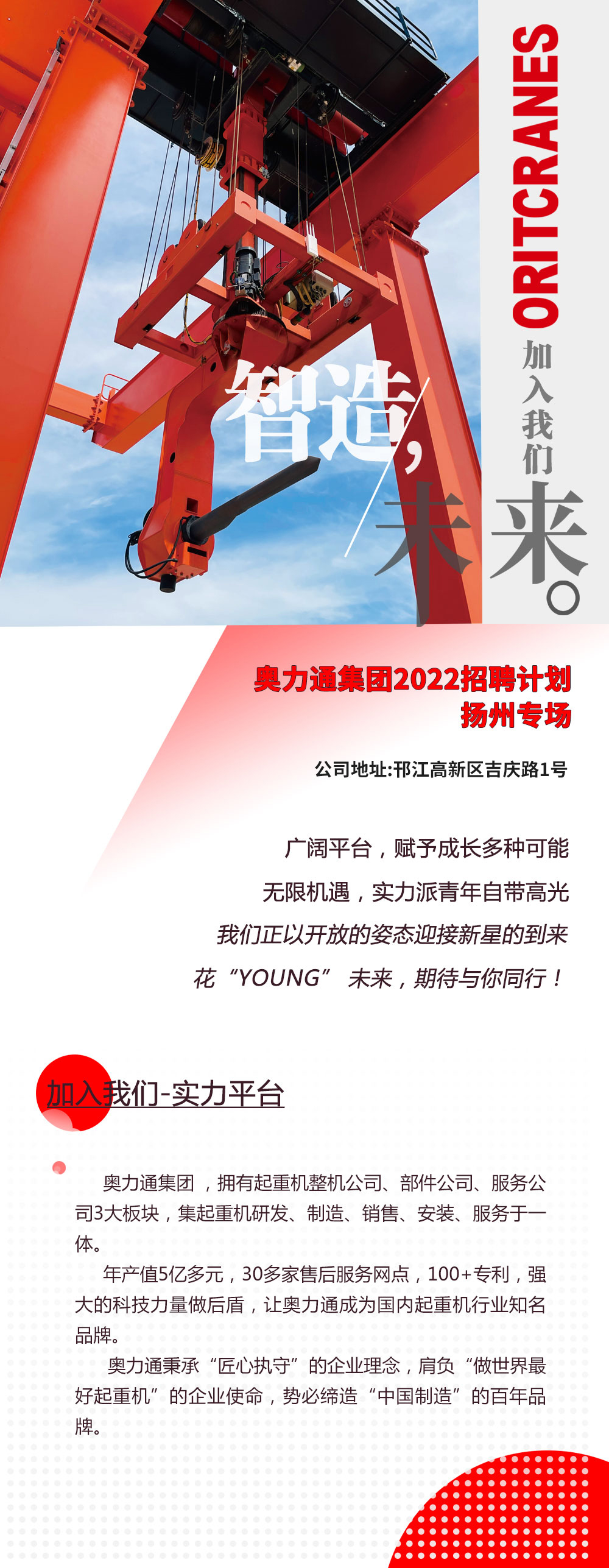 奧力通起重機,揚州招聘,起重機,龍門吊,起重吊裝,電動單梁起重機,歐式雙梁橋式起重機,起重機廠,起重機械生產廠商,雙梁起重機廠家,單梁橋式起重機,行車吊機,歐式起重機,行車,智能起重機,天車起重機,起重機公司,電子起重機,冶金起重機,立柱式懸臂吊起重機,橋式起重機,天車,立柱式懸臂吊,吊車
