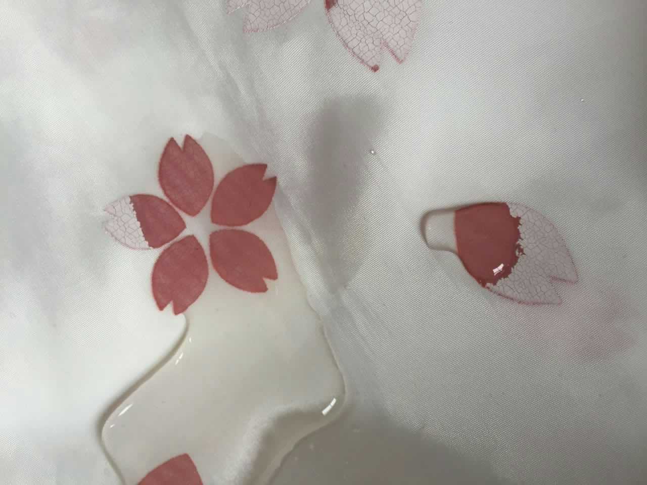 2.待圖案的變色顏料干透后,用100-120目絲網(水性網)將遇水變色顏料印在圖案之表面,若需稀釋??杉尤胄×空麴s水稀釋。頂凡遇水變色顏料干透后用肉眼幾乎看不見,顯示透明的效果。