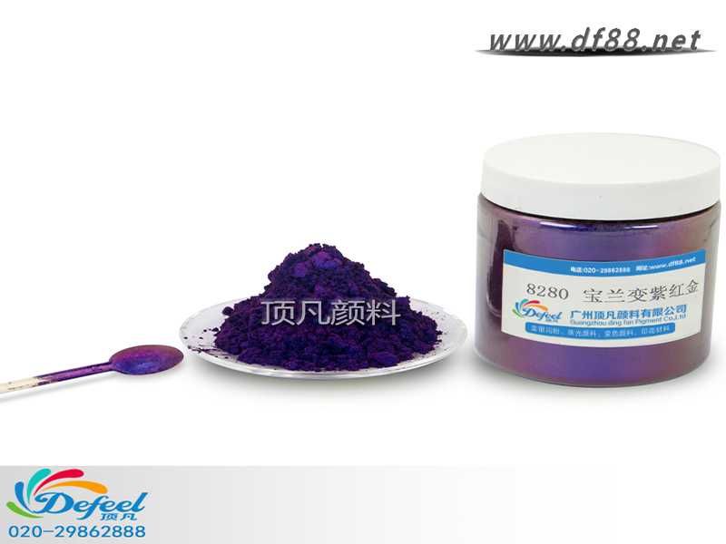 8280 寶蘭變紫紅金變色龍粉是經(jīng)由微膠囊技術(shù)處理過(guò)的產(chǎn)品,外觀為粉狀,粒徑在1~10μm之間,并具有耐高溫、抗氧化等微膠囊所改質(zhì)的特性。